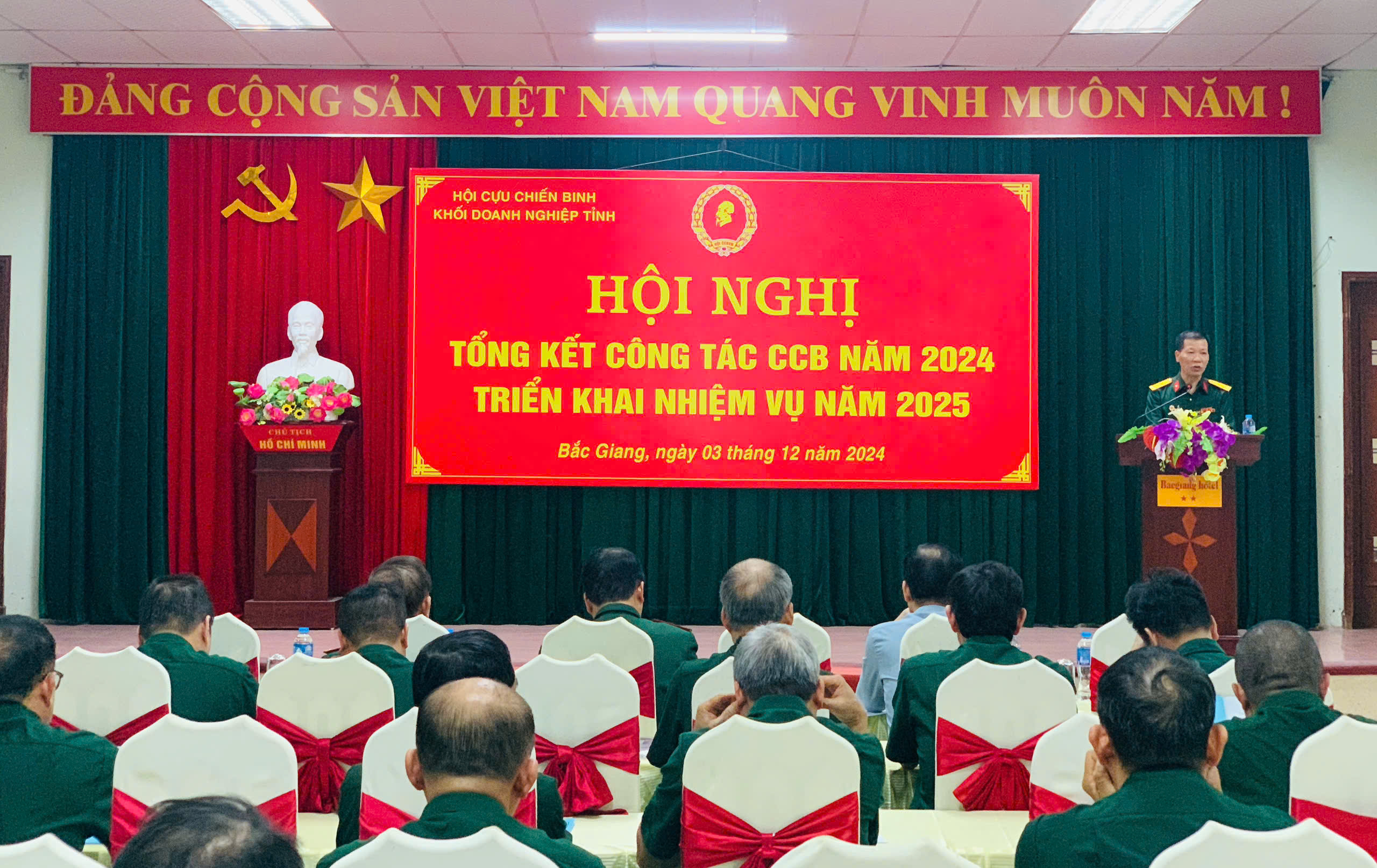 Ngày 03/12/2024, Hội CCB Khối Doanh nghiệp tỉnh tổ chức Hội nghị tổng kết công tác CCB năm 2024, triển khai nhiệm vụ năm 2025. Dự và chỉ đạo hội nghị có đồng chí Nguyễn Quốc Hà - Phó Chủ tịch Hội CCB tỉnh Bắc Giang.